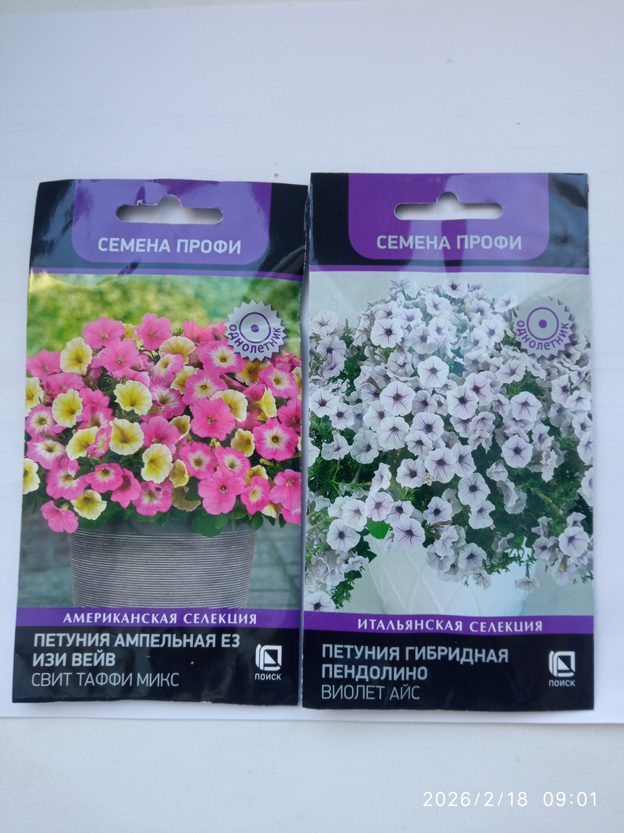 Приветствую всех на моём канале! Сегодня ровно месяц как я посеяла петунии. Пришло время подвести итоги по всходам. Ну что могу сказать? Народная мудрость "Дорого да мило, дёшево да гнило" не всегда срабатывает! В этот раз я купила дорогие семена итальянской селекции "Пендолино Виолет Айс". Очень уж они мне приглянулись, напоминая по фото популярную петунию "Тайдал Сильвер", которой, к сожалению, не было в магазине. Взяла я две пачки от "Семена Профи". И что же в итоге? Все три пакета я сеяла в один контейнер, условия были абсолютно одинаковые, но результат, как видите, получился совершенно разный. Вот они, мои четыре хиленьких росточка петунии Изи Вейв "Свит Таффи Микс". Вообще, должна признаться, всходы петуний этой весной меня не особо радуют. Практически все ростки очень слабенькие. Из двух пакетов, что на фото, взошли только те, что справа – синие. А вот "Петуния Виолет" не дала ни одного всхода.
