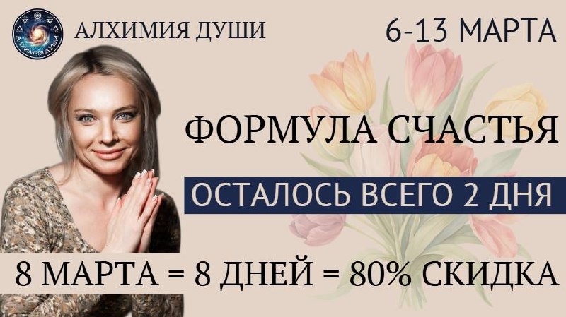❗️ ФОРМУЛА СЧАСТЬЯ – ОСТАЛОСЬ ВСЕГО 2 ДНЯ - минус 80% от цены на сайте на записи всех прошедших мероприятий на «Алхимии Души
