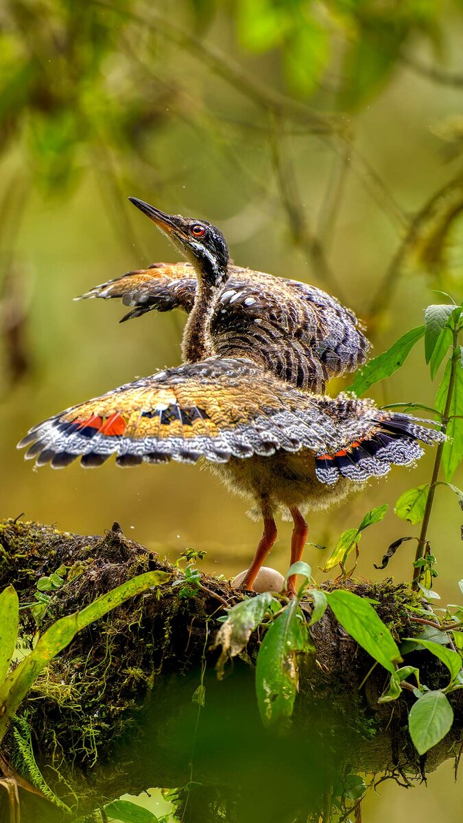 Juvenile sunbittern displaying at nest, Ecuador (© Andy Rouse/