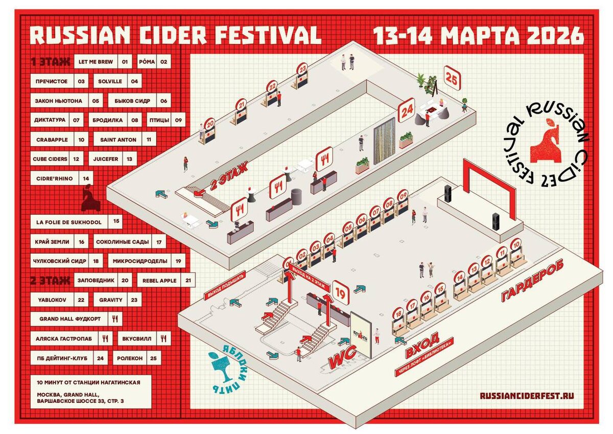 Друзья, в ближайшие пятницу и субботу в столице состоится Russian Cider Festival! 🍏🍎Десятки сидроделен, более сотни сортов сидра, пуаре и иных напитков из яблок ждут вас на удобной и современной площадке, расположенной в шаговой доступности от метро Нагатинская. 🕵🏻♂️Для искушенных посетителей сидродельни представят специальные батчи и свежие релизы урожая 2025 года. Отличная возможность попробовать их все в одном месте! 🗺️Для вашего удобства прилагаем карту фестиваля с расположением всех сидроделен и активити-зон. 💳Билеты на фестиваль тут, а ровно в полночь c 12 на 13 марта они превратятся в чуть более дорогие билеты 😅 ‼️Прямо сейчас вы можете купить билет с 10% скидкой по промокоду negur До встречи!🥂