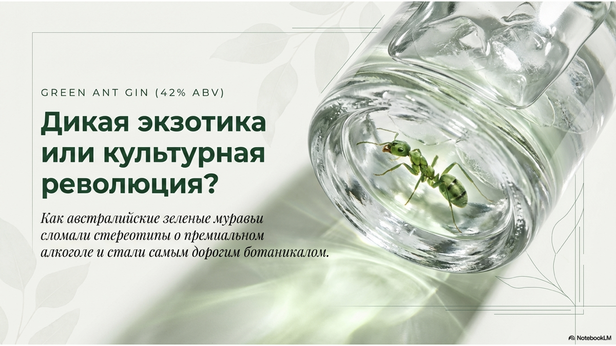 Будем честны, что наш человек всегда питал необъяснимую слабость ко всякой дичи: настойка со змеей из Азии, жареного скорпиона ради интереса сжуем и поэтому, когда я наткнулся на этот австралийский джин, то понял: об этом просто необходимо рассказать! Когда слышишь «джин с зелеными муравьями», первая мысль — это очередной туристический аттракцион, но Green Ant Gin 42% ломает стереотипы. Да, в каждой бутылке действительно плавают настоящие насекомые, но главное в этом напитке — уникальный подход к ботаникалам и глубокий, премиальный смысл. Зеленые муравьи (Oecophylla smaragdina) — это не маркетинговый декор. Для австралийских аборигенов они веками были традиционным источником пищи и лекарством. Создатели джина пошли на смелый шаг и намеренно отказались от классического наполнения, чтобы вывести на первый план аутентичные вкусы коренных народов. Муравьи здесь работают как мощнейший натуральный ароматизатор. Они дают невероятный цитрусовый взрыв с яркими нотами лимона, лайма и свежего кор