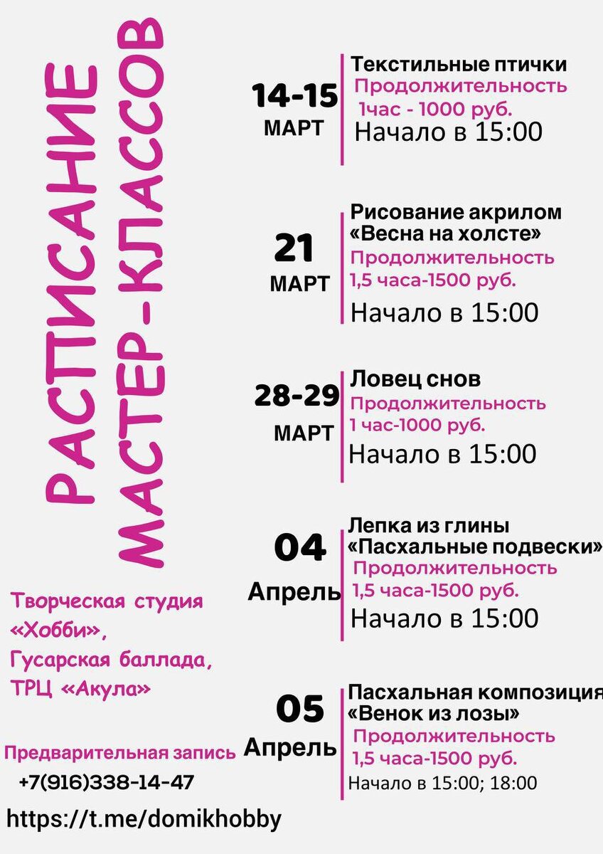 Приглашаем вас на ближайшие мастер-классы в нашей студии «Хобби»! 🎨✨Выбирайте понравившийся мастер-класс или закажите индивидуальную