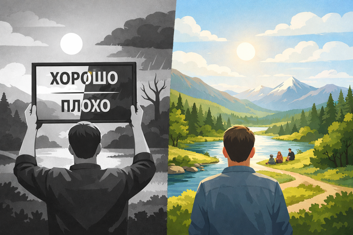Если мы оцениваем что-то как хорошее, не важно будь то событие, явление, предмет или человек, мы часто перестаём видеть подводные камни, слабые стороны. Идеализируем. Расслабляемся. А потом спотыкаемся от те самые камни, разочаровываемся, расстраиваемся.