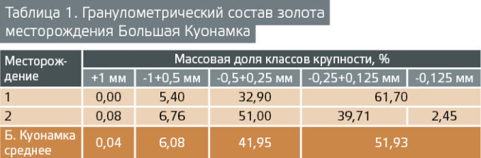 Обращает на себя внимание тот факт, что более 69 % золота, извлекаемого из текущих хвостов ШМН, имеют размерность менее 0,25 мм, что свидетельствует о высокой эффективности работы винтовых сепараторов по мелкому и тонкому золоту.