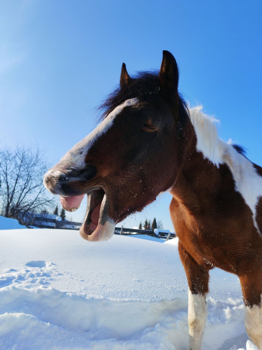 ? 🐴 🙃 Это такое милое и забавное зрелище! Но мне кажется, Денни тоже не в восторге от этой бесконечной зимы. 😅 Посмотрите на эти фотографии – разве не похоже, что она говорит: "Ну когда же уже весна, а?" 😂