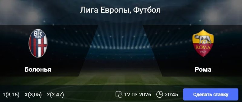 Статистика Болоньи: Статистика выступлений «Болоньи» в еврокубках указывает на стабильную игру в защите: в 12 из 13 последних матчей команда пропускала не более одного мяча. Текущая беспроигрышная серия в Лиге Европы составляет 9 встреч (6 побед и 3 ничьи). На домашней арене клуб отличался забитыми голами в 6 из 7 последних международных поединков. Статистика Ромы: В последних шести матчах «Ромы» в Лиге Европы фиксировалось как минимум два забитых мяча. Выездная статистика римлян также выглядит убедительно: в 5 из 6 последних гостевых встреч клуб не проигрывал (3 победы, 2 ничьи). При этом в 6 из 7 предыдущих игр на чужом поле команда пропускала не более одного гола. 🎯 Фора 2 (0) 🎲 кф (1,68) 🎯 X2 и ТМ (2,5) 🎲 кф (1,96) 🎯 ТМ (2,5) 🎲 кф (1,56) 👉 СДЕЛАТЬ СТАВКУ 🎁 ФРИБЕТ WINLINE - 3000₽ (промокод: BETWIN) 👉 СМОТРЕТЬ ПРОГНОЗ