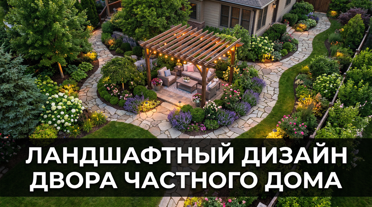 Ландшафтный дизайн двора частного дома — это не просто «посадить цветочки и положить плитку». Это продуманная система, где каждый элемент — дорожки, зоны отдыха, озеленение, освещение — работает на комфорт, функциональность и эстетику. Грамотно спроектированный двор увеличивает стоимость дома на 15–20% и превращает придомовую территорию в полноценное жилое пространство под открытым небом.