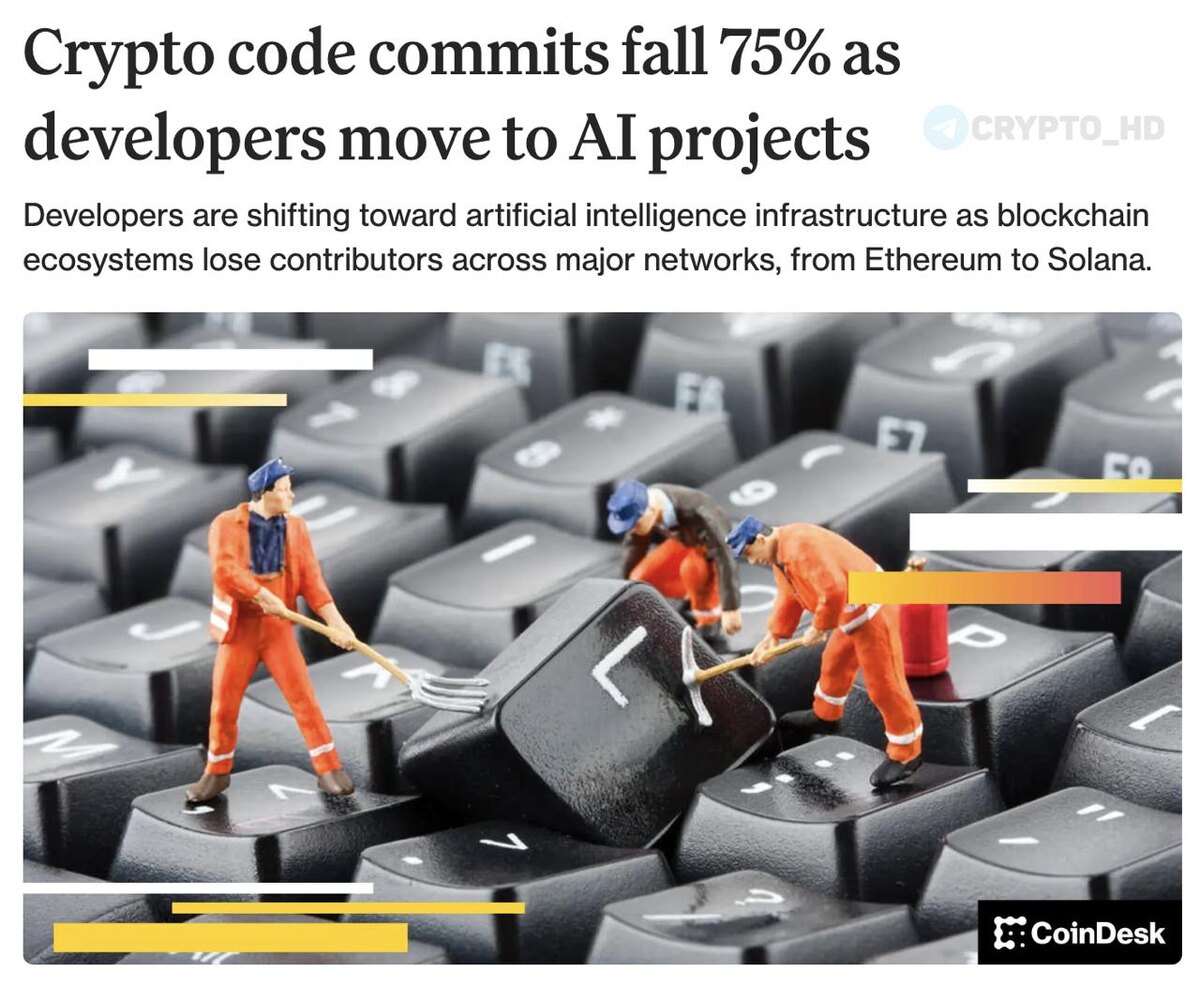 ΡΠ°Π·ΡΠ°Π±ΠΎΡΡΠΈΠΊΠΎΠ² ΡΠΎΠΊΡΠ°ΡΠΈΠ»ΠΎΡΡ Π½Π° 56% β Π΄ΠΎ ~4600. ΠΠΈΠ½Π°ΠΌΠΈΠΊΠ° ΠΏΠΎ ΠΎΡΠ΄Π΅Π»ΡΠ½ΡΠΌ ΡΠ΅ΡΡΠΌ: β’ Ethereum (#ETH) -34% ΠΊΠΎΠΌΠΌΠΈΡΠΎΠ². β’ Solana (#SOL) -40%. β’ BNB Chain (#BNB) -85%. β’ Aptos (#APT) -60%. β’ Base -52%. ΠΡΠΈ ΡΡΠΎΠΌ Π½Π° GitHub ΡΠΆΠ΅ Π±ΠΎΠ»Π΅Π΅ 4,3m ΡΠ΅ΠΏΠΎΠ·ΠΈΡΠΎΡΠΈΠ΅Π², ΡΠ²ΡΠ·Π°Π½Π½ΡΡ