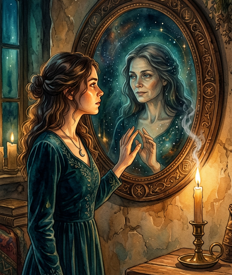 После недавней практики с зеркалом одна из подписчиц написала удивительно честный комментарий: «Не могу долго смотреть в зеркало себе в глаза — страшно. Появляется ощущение, что это не я смотрю в зеркало, а оттуда смотрят на меня». И знаете что? Нас таких очень много. Если вы когда-нибудь пытались смотреть себе в глаза дольше одной минуты, вы, скорее всего, ловили это жутковатое чувство: лицо начинает казаться чужим, черты искажаются, а внутри поднимается безотчетная тревога, от которой хочется немедленно отвести взгляд. Что же происходит на самом деле? С точки зрения науки, это оптическая иллюзия и особенность нашего мозга. Когда мы долго фиксируем взгляд на одной точке (например, на зрачках), мозг перестает воспринимать «периферию» лица. Образ распадается, и мы перестаем узнавать самих себя. Мозг воспринимает это как угрозу — перед нами кто-то чужой! Отсюда и паника. В эзотерических и шаманских традициях зеркало всегда считалось порталом.