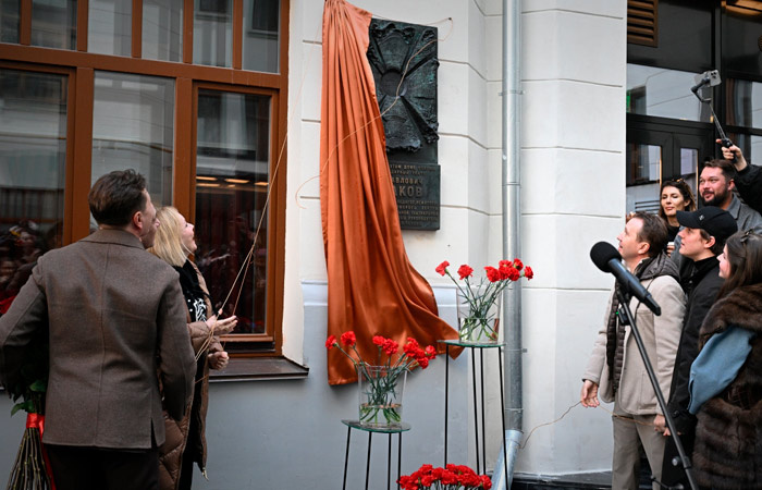 Москва. 12 марта. INTERFAX.RU - В Москве открыли памятную доску актеру и режиссеру Олегу Табакову на фасаде Исторической сцены Театра Олега Табакова на улице Чаплыгина. "Вроде такой грустный должен быть день - день памяти. Но Олег Павлович - это наш атом солнца, и память о нем будет всегда невероятно светлой. (...) Этот театр, Театр Олега Табакова, его любимый подвал, который был им выстрадан, и сегодня вот на этом великом, замечательном доме, удивительном произведении искусства, который приютил Олега Павловича и всех его учеников, сегодня будет открыта памятная доска", - сказал на церемонии открытия художественный руководитель "Современника" и Театра Олега Табакова, Театральной школы Олега Табакова Владимир Машков. Как отметил Машков, на памятной доске изображен "атом солнца, и здесь вы увидите те части жизни, которые так или иначе отразились и продолжают отражаться на нас - это и любимый подвал, это и Сцена на Сухаревской, это и театр Современник, это и Школа Олега Табакова, вот там