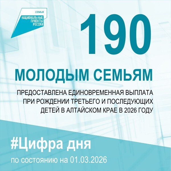 рублей в Алтайском крае в 2026 году. 📍Цифра дня по состоянию на 1.03.2026 г. Подробнее о мерах поддержки молодых семей в Алтайском крае читайте здесь 👉 https://www.aksp.ru/~m ✨Меры поддержки предоставляются в рамках нацпроекта «Семья» и региональной программы повышения рождаемости. #Алтайскийкрай #Минсоцзащита_22 #Цифрадня