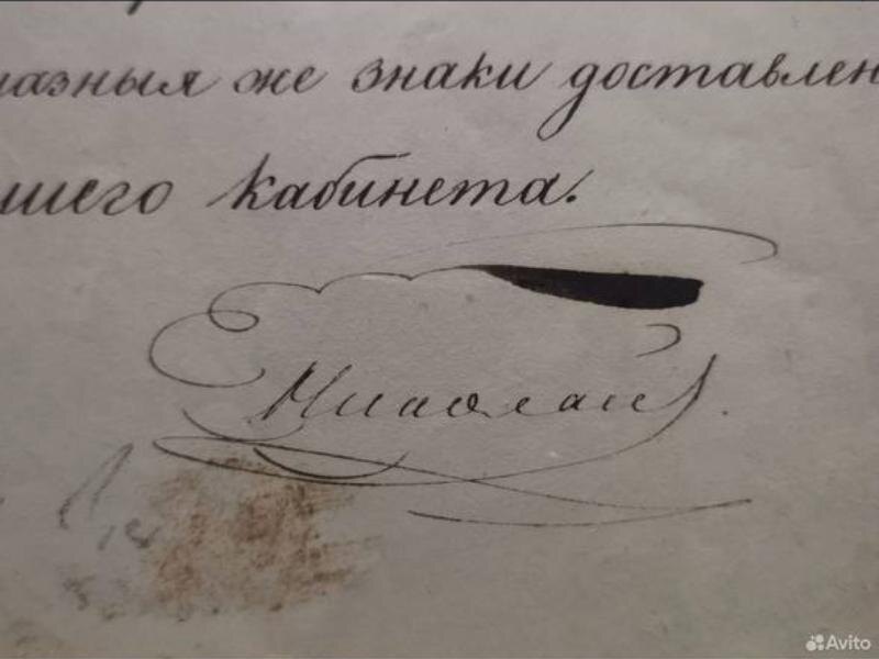 Смешные деньги для документа с подписью исторической личности На одной из популярных площадок для продажи и покупки всего и вся выложили документ с автографом русского Императора Николая I. Цена вопроса – 130 тыс. рублей. Подпись русского правителя поставлена под указом от декабря 1825 года. Утверждается, то речь идет о документе, выпущенном спустя 2 недели после восстания декабристов. Текст в указе такой: «В вознаграждение отличной службы всемилостивейше жалуем кавалерами: ордена святой Анны второй степени с алмазами, состоящего при его императорском высочестве генерал фельдцейхмейстер обер-аудитора шестого класса Попова; ордена святого равноапостольного князя Владимира четвертой степени архитектора Гвардейской казарменной комиссии титулярного советника Тимофеева; алмазные знаки ордена святой Анны второй степени флигель-адъютанту нашему лейб-гвардии Московского полка полковнику Адлербергу и за содействие к выгодному размещению войск 24й пехотной дивизии засвидетельствованное его импер