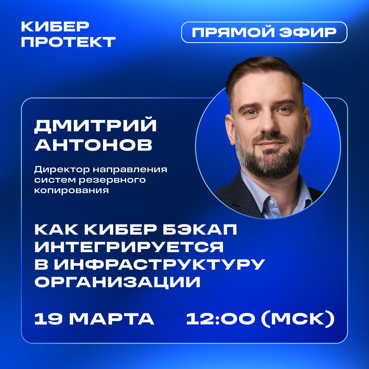 🔃 Кибер Бэкап: интеграция в ИТ-ландшафт Современная корпоративная инфраструктура — это не набор разрозненных компонентов, а целостная среда. Чтобы бизнес-процессы оставались непрерывными и безопасными, системе резервного копирования необходимо работать в связке с другими ИТ- и ИБ-решениями. 19 марта в прямом эфире расскажем о возможностях интеграции Кибер Бэкапа со следующими системами: • Службы каталогов • Системы отслеживания событий безопасности • Системами ИТ-мониторинга Дмитрий Антонов, директор направления систем резервного копирования, расскажет о текущем уровне реализации этих функций в Кибер Бэкапе и раскроет дорожную карту развития продукта в 2026 году. Ссылка на регистрацию ⬅️ 🛡 Киберпротект в MAX | в VK