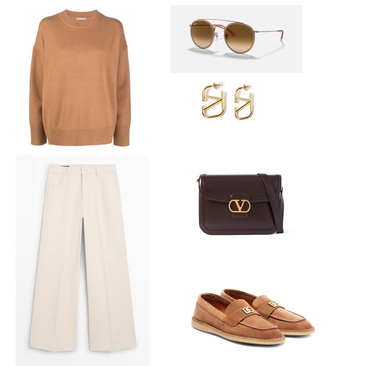 Более городской вариант. Но вполне расслабленный за счет мягкого свитера и лоферам