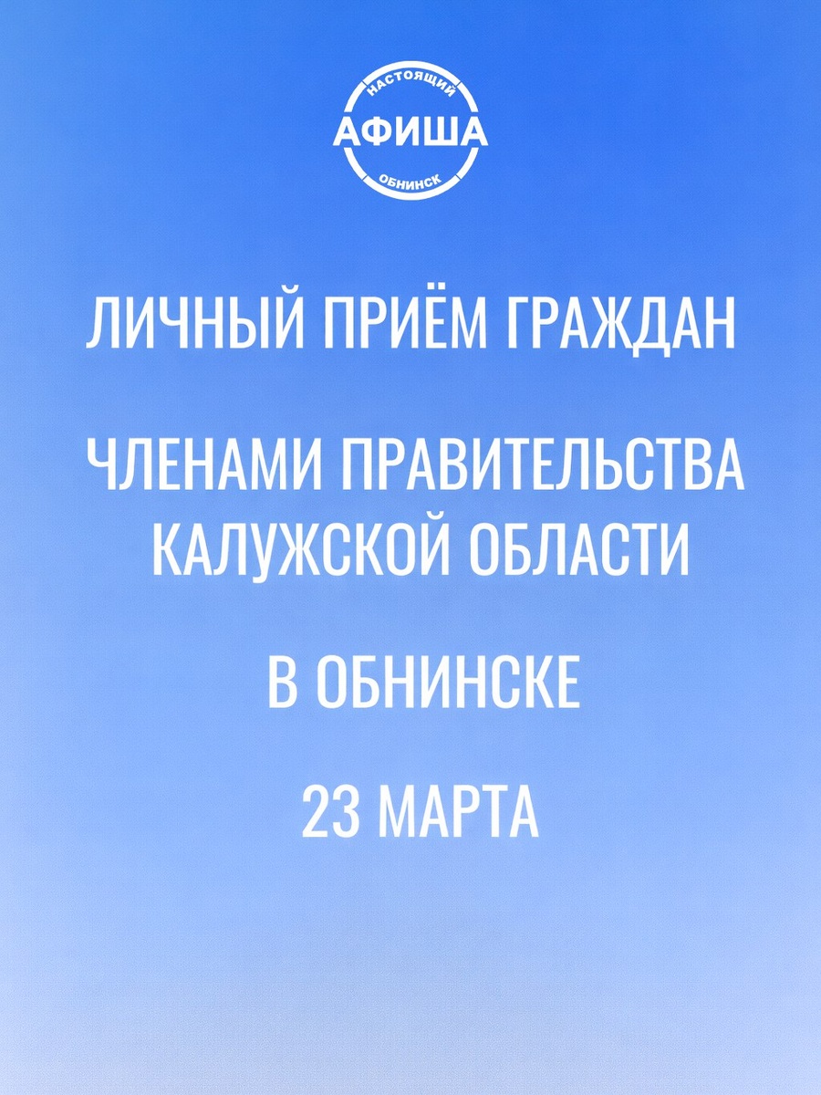 👥23 марта в Администрации города Обнинска члены Правительства Калужской области проведут личный приём граждан