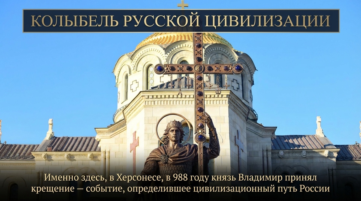 Здесь, в Херсонесе, в 988 году князь Владимир принял крещение — событие, определившее цивилизационный путь России. Древнегреческий полис V века до нашей эры, ставший колыбелью русского православия, — таких мест на карте страны больше нет.