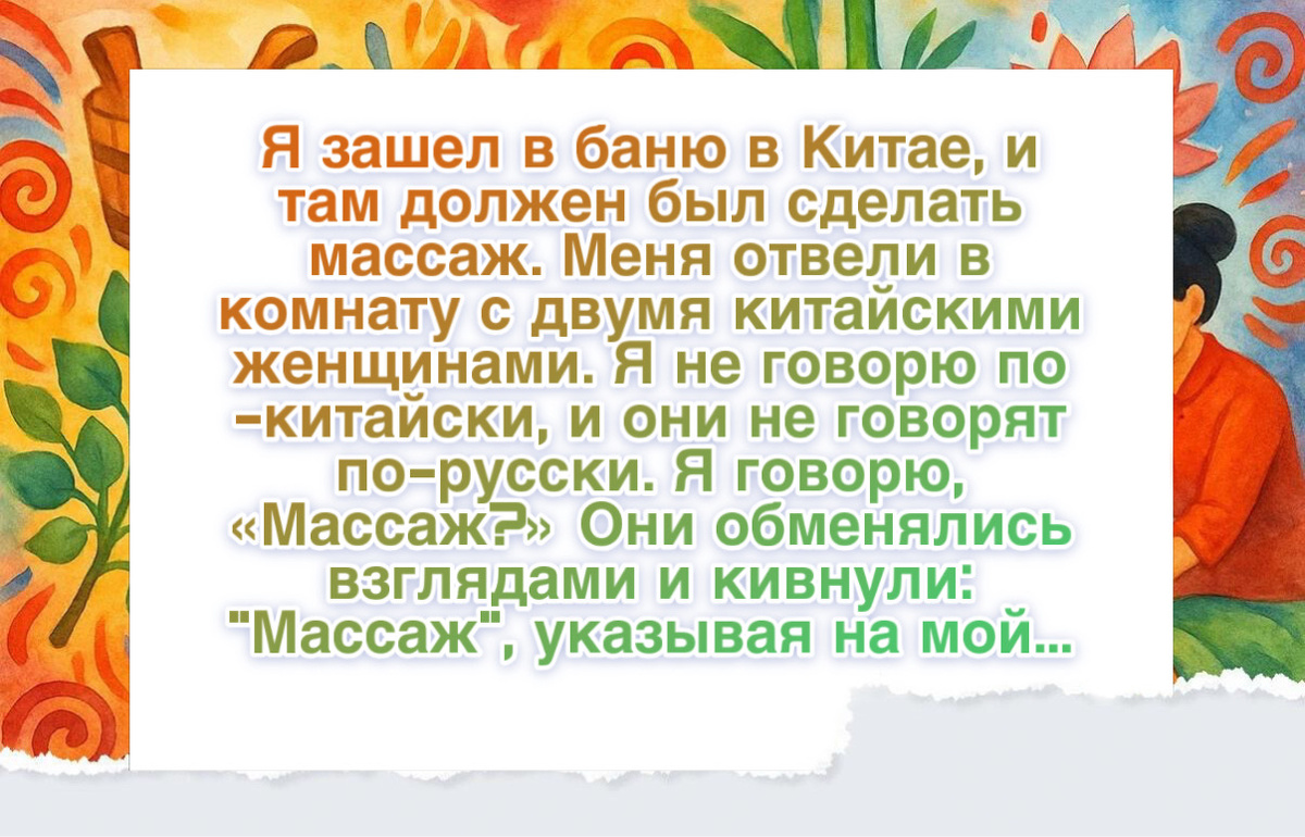 “Однажды я пошел в баню в Китае. После купания мне должны были сделать массаж.