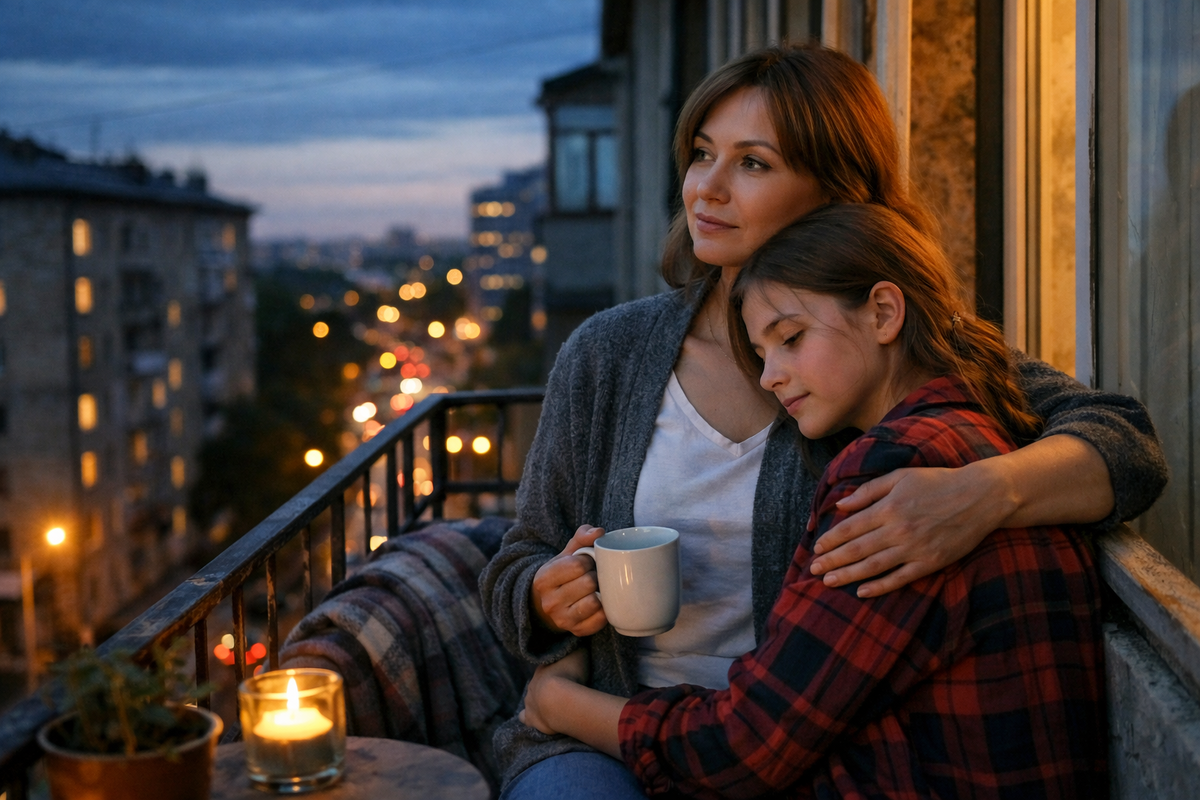Мы сидели молча, обнявшись. А внизу город жил своей жизнью. Но здесь, на узком балконе тесной двушки, было тепло. Здесь была семья. Настоящая.