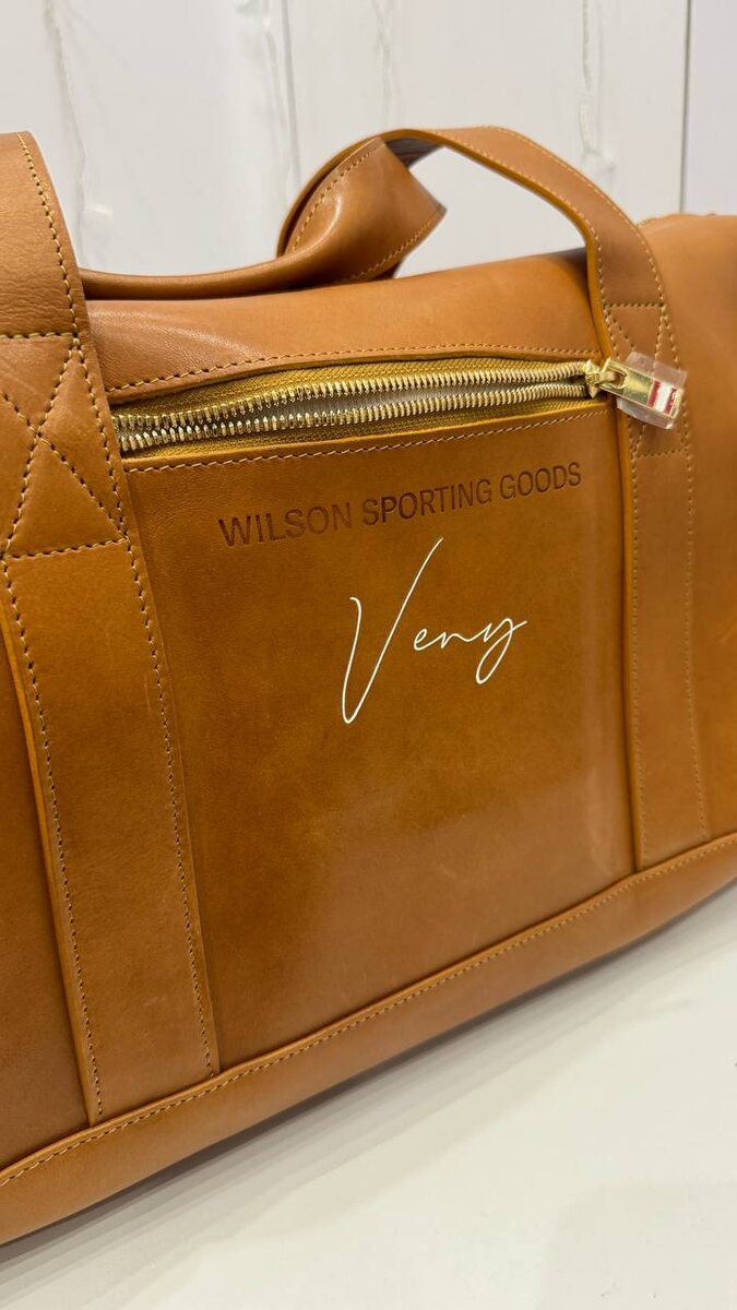 Кожаная спортивная сумка и рюкзак Wilson из кожи Crazy Horse — материал с характером. Работать с такой поверхностью непросто: кожа живая, может реагировать на давление и менять оттенок — это естественная особенность материала. Здесь композиция построена вокруг лаконичной персональной надписи VENY — аккуратного графического акцента. Иногда одной линии достаточно, чтобы вещь стала персональной. — Небольшой лайфхак по уходу: такую кожу полезно периодически обрабатывать специальным маслом, а затем слегка полировать сухой шерстяной или фланелевой тканью — фактура становится глубже и мягче. Эту кожу нередко называют «самовосстанавливающейся» именно из-за таких свойств.