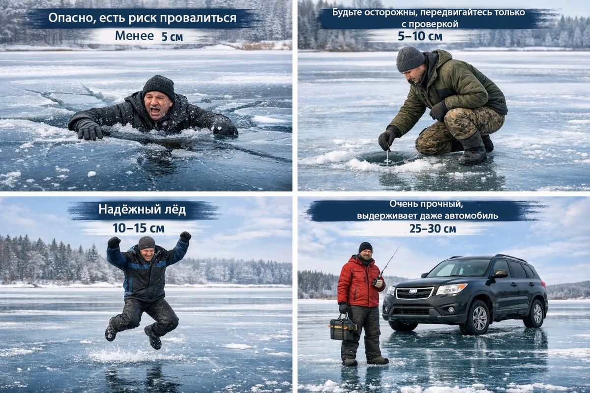 Третье правило - ловить меньше, но умнее. Лучше одна безопасная точка, чем пять перспективных, до которых нужно идти по сомнительному льду.