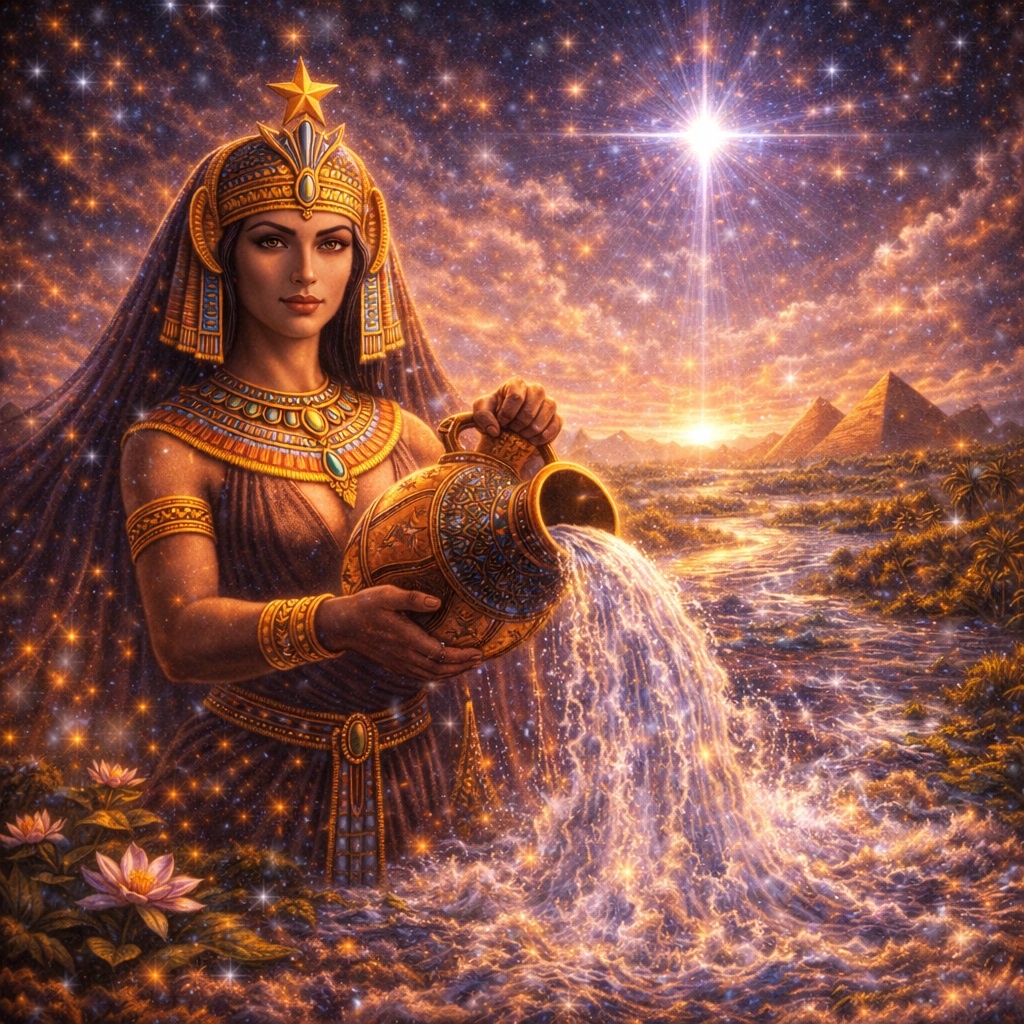 Её имя связано с остротой, сиянием, проявлением в небе. И это очень важно. Сопдет не просто «есть» среди звёзд. Она появляется. Она сообщает. Она открывает цикл. Её звёздный восход имел почти государственное значение, потому что совпадал с важнейшим моментом года — началом разлива Нила.