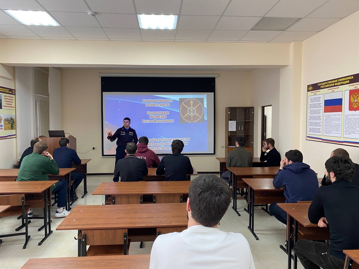 В Северо-Кавказской государственной академии прошла информационная встреча со студентами Аграрного и Инженерного институтов, посвященная работе Военного учебного центра СКГА. Спикером выступил начальник ВУЦ, подполковник Рустам Магомедов. В ходе встречи он рассказал студентам о деятельности центра, направлениях подготовки и возможностях, которые открываются перед курсантами. Отдельное внимание было уделено вопросам военной службы в Российской Федерации, а также перспективам профессионального развития для студентов, выбирающих военную подготовку. Рустам Мухадинович поделился и своим личным профессиональным опытом. Он является ветераном специальной военной операции и трижды кавалером ордена Мужества. Ранее офицер возглавлял поисково-спасательную и парашютно-десантную службу 4-й гвардейской армии ВВС и ПВО, подразделение, которое выполняет сложнейшие задачи по спасению военных летчиков. В рамках встречи студентам также рассказали о новом роде войск Российской Федерации — Войсках беспи