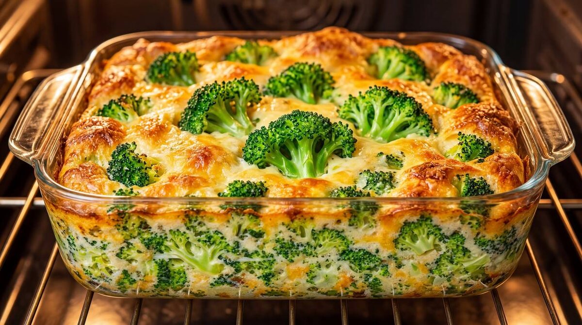 4. Заливаю брокколи в форме этой смесью из яиц.