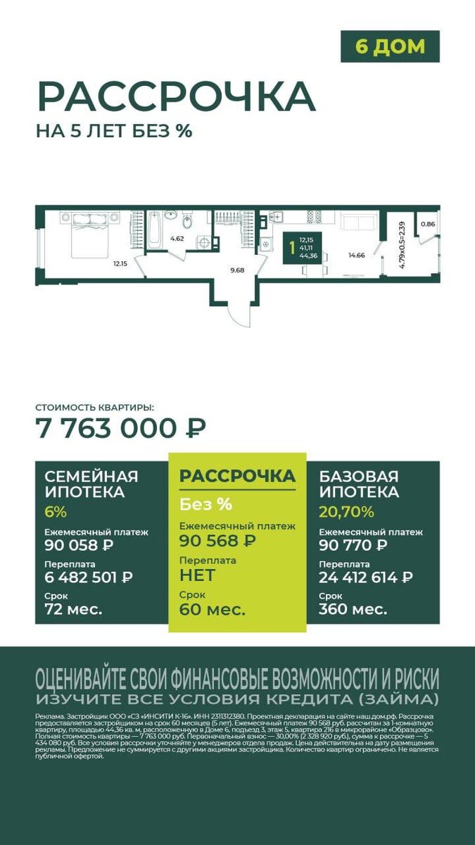Почему рассрочка — лучший инструмент для покупки однушки? Показываем на цифрах! 📐 Квартира №803, 39,47 м² 💰 Стоимость: 6 907 250 ₽ 📊 СРАВНИВАЕМ УСЛОВИЯ: РАССРОЧКА 0% на 5 лет • Ежемесячный платеж: 80 584 ₽ • Переплата: 0 ₽ • Срок: 60 месяцев • Итого заплатите: 6 907 250 ₽ БАЗОВАЯ ИПОТЕКА 20,70% на 30 лет • Ежемесячный платеж: 80 999 ₽ • Переплата: 21 784 833 ₽ 😱 • Срок: 360 месяцев • Итого заплатите: 28 692 083 ₽ СЕМЕЙНАЯ ИПОТЕКА 6% на 6 лет • Ежемесячный платеж: 80 131 ₽ • Переплата: 5 767 885 ₽ • Срок: 72 месяца • Итого заплатите: 12 675 135 ₽ 🎯 ВЫВОДЫ: ✅ При рассрочке вы платите ПРАКТИЧЕСКИ СТОЛЬКО ЖЕ в месяц, как по ипотеке (разница всего 415 ₽) ✅ Через 5 лет вы полностью владелец квартиры, а не через 30 лет ✅ Не нужно ждать одобрения банка и собирать горы документов Оставляйте заявку на нашем сайте или звоните по тел: 88002001023 What app: +78612042910 Задайте вопрос нам в чат Делитесь нашим каналом https://dzen.ru/id/664dd8eddddfdf4d55debd30