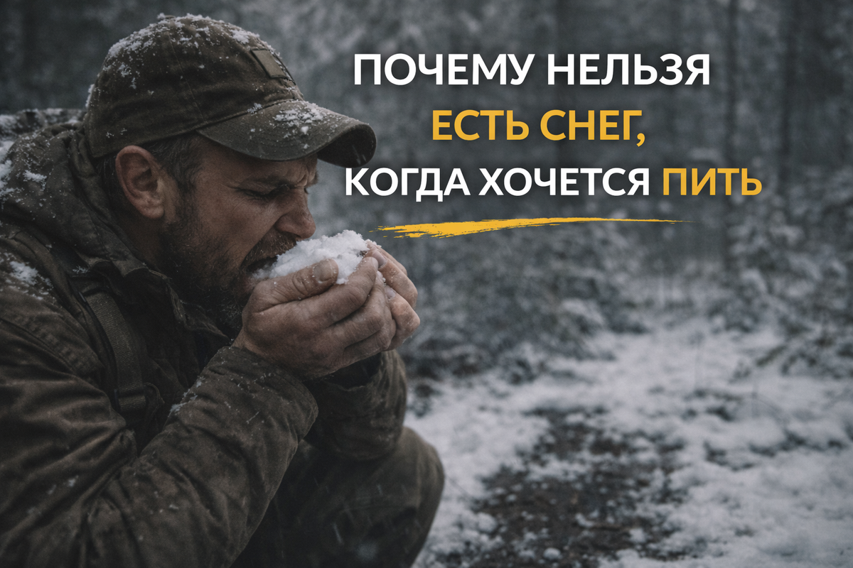Зимой в лесу кажется, что проблема воды решается очень просто — вокруг лежит снег. Но употреблять его напрямую не лучшая идея.
