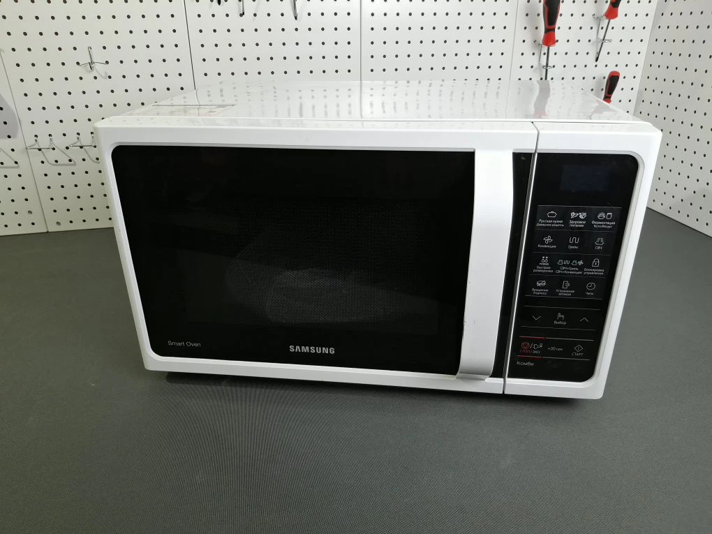 Микроволновые печи Samsung считаются надежной техникой, однако даже такие устройства со временем могут выходить из строя. Одной из распространённых проблем является ситуация, когда микроволновка Samsung работает, но перестает греть пищу. Именно с такой неисправностью в сервис по ремонту бытовой техники в Казани поступила микроволновая печь Samsung MC28H5013AW. Симптомы неисправности Устройство включалось и работало как обычно: вращалась тарелка, запускались программы, горела подсветка. Однако продукты оставались холодными. Такие симптомы чаще всего указывают на проблему в высоковольтной системе микроволновой печи. Диагностика устройства После разборки корпуса мастер провел проверку основных элементов высоковольтной цепи: — магнетрона