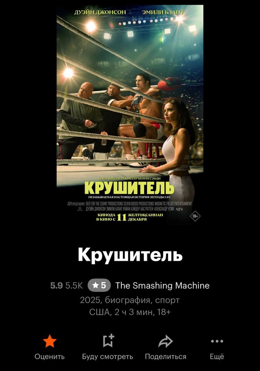 Вот и учи английский после такого бл. Шо один фильм, шо второй на английском пишутся одинаково:" The Smashing Machine", шо в переводе на наш: "Разрушительная машина / Крушащая машина". Фильм 2002, документалка, переведена правильно, а художественный со Скалой 2025 года переведён как "Крушитель", хотя у Марка Керра, о ком собственно фильмы, погоняло как раз "The Smashing Machine". Естественно речь в обоих картинах о бойце эпохи зарождения смешанных единоборств, одном из ярких представителей борьбы и стиля "Ground and Pound", что можно перевести как "повалить и бить". В документалке 2002 года показывают как он готовится к боям, сталкивается с травмами, набором формы и всё это сопровождается уколами анаболиков, стероидов, путешествиями в Японию на бои, чуток боёв и что было после, его взаимоотношение с другими бойцами, командой, щипотку личной жизни. Документалка хорошая, смотрится не напряжно, а демонстрация тёмной стороны боёв тех времён показывает, что большой спорт чистым не бывает.