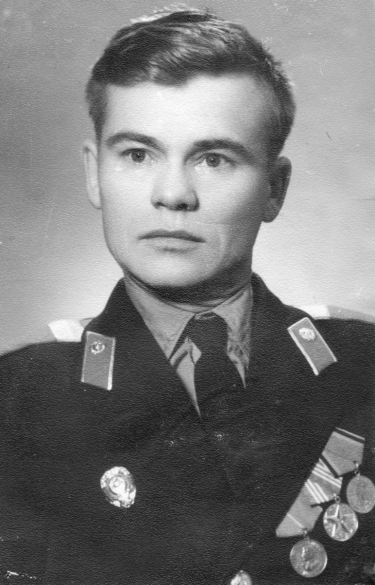 Старший сержант милиции в открытом кителе с нашивными погонами образца 1961 года