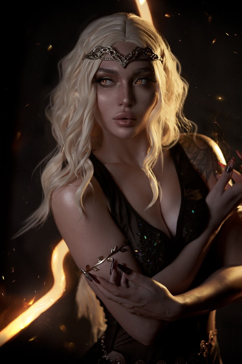 Марика из Elden Ring в этом косплее превращается в по-настоящему величественный и мистический образ, где красота, власть и разрушительная сила переплетаются в одном кадре. AKUMURA воплощает богиню Междуземья с холодной уверенностью и гипнотической харизмой: платиновые волосы, изящная корона и тёмное платье создают образ древней правительницы, чья воля способна менять судьбу мира. Огненные линии света, искры и массивный молот усиливают драматичность сцены — будто перед нами момент из легенды Elden Ring, где сама Марика вершит судьбу Золотого Древа. Атмосфера съёмки получилась тёмной, эпичной и кинематографичной, а каждый кадр выглядит как фрагмент масштабной фэнтезийной саги. Фэндом: Elden Ring
