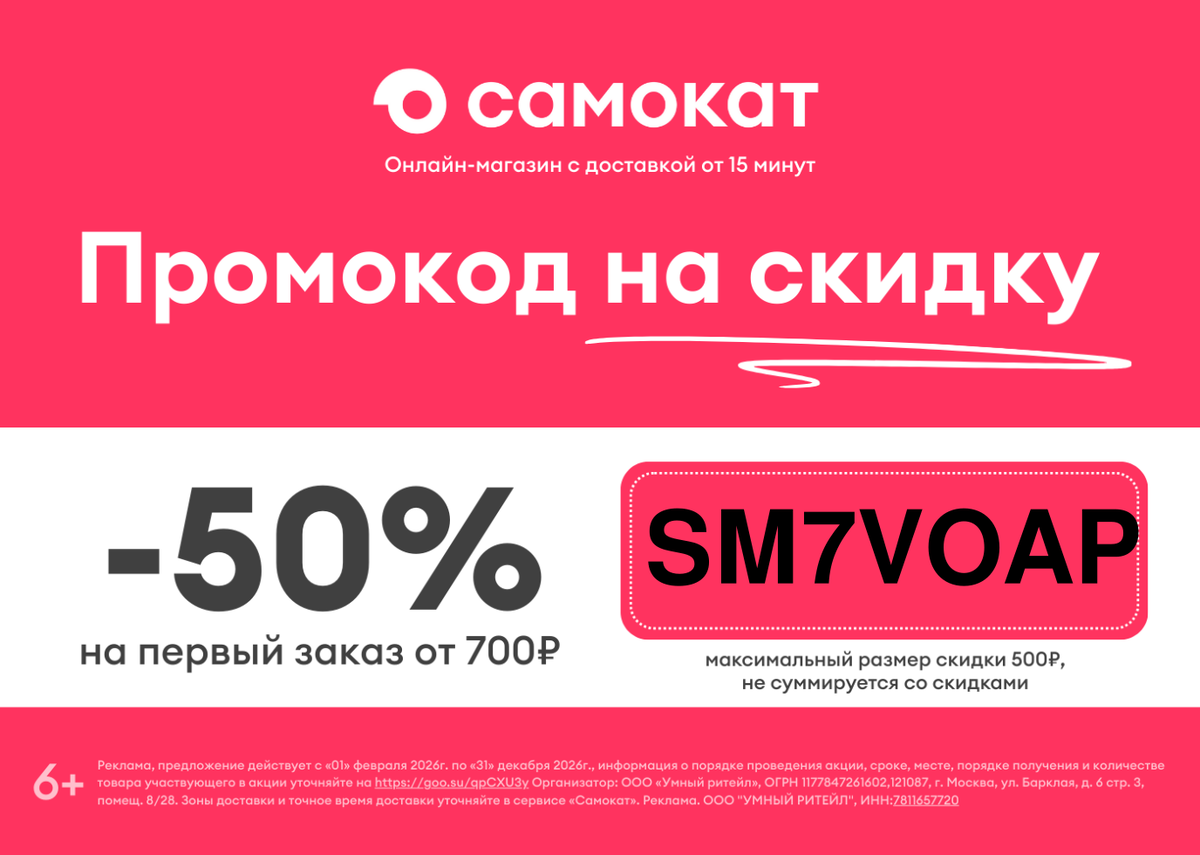 🔥 SM7VOAP — скидка 50% на первый заказ от 700 ₽ (максимум 500 ₽, не суммируется со скидками)