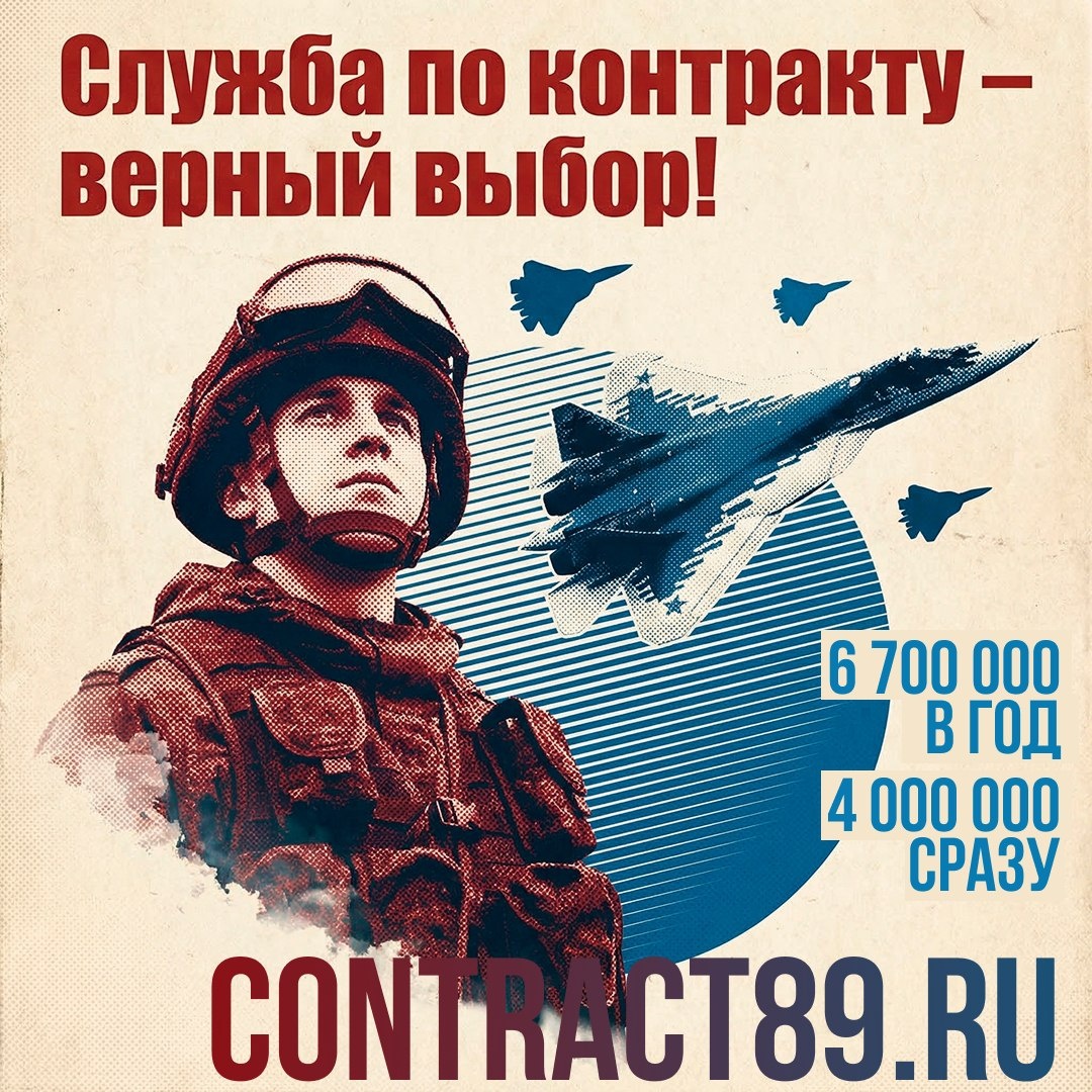 При подписании контракта с ВС РФ от Ямала вы получите: ✔ 6 700 000 ₽ в год ✔ 4 000 000 ₽ единовременно ✔ от 225 000 ₽ ежемесячно в зоне СВО Подробнее: contract89.ru