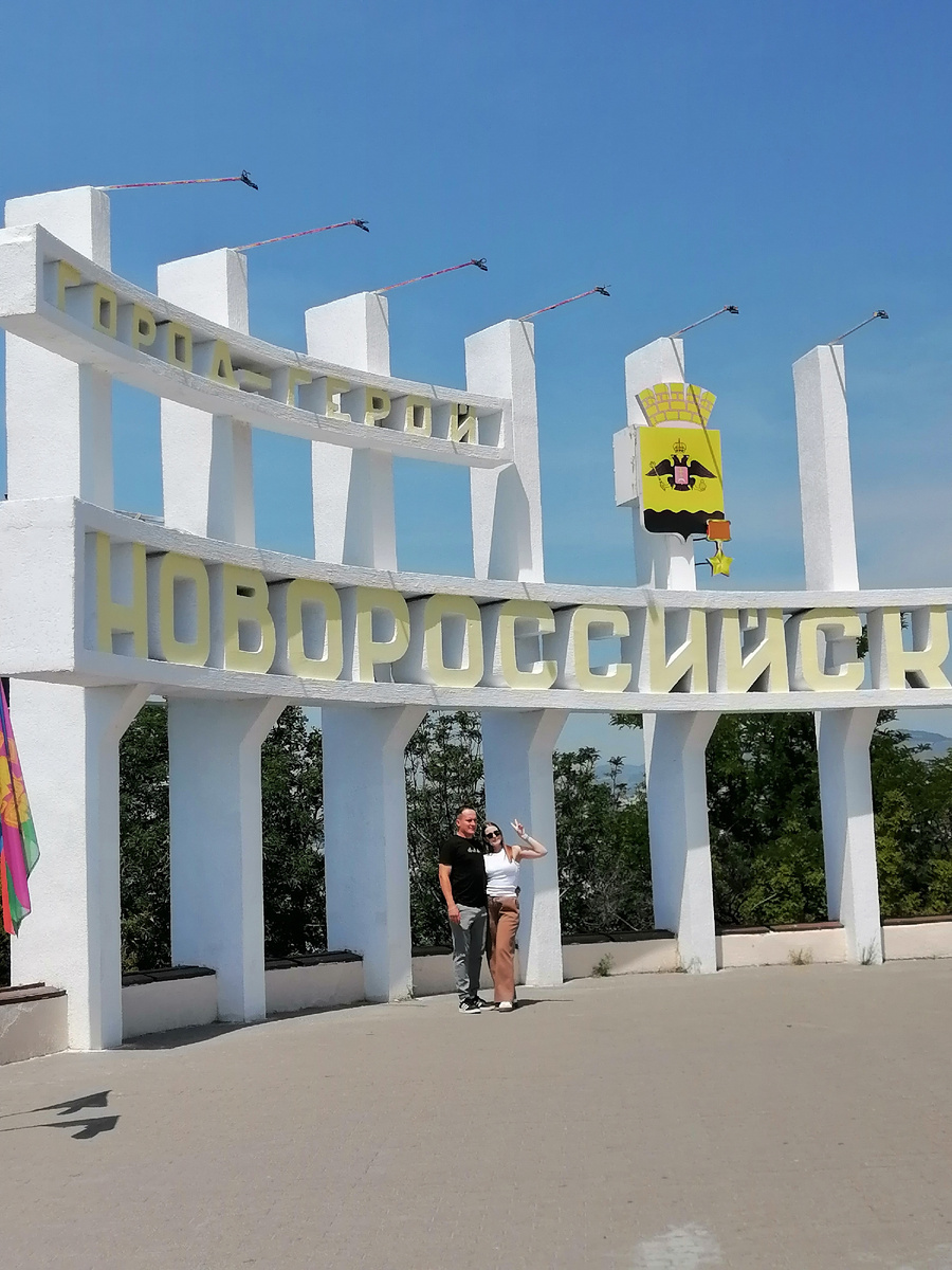 Первая остановка — при въезде в Новороссийск. Та самая арка с надписью, смотровая площадка, где все фотографируются.