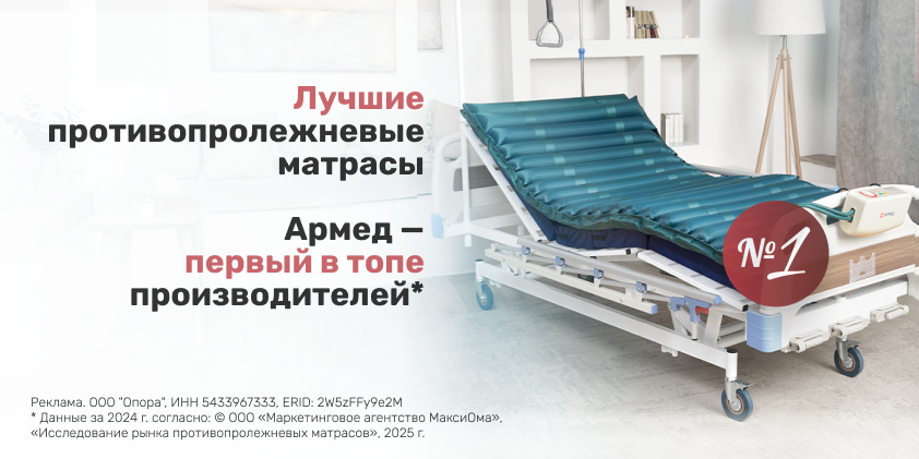Бренд Армед прочно ассоциируется у покупателей с качественной реабилитацией, делает её доступной не только для медучреждений, но и для дома. Одним из ключевых товаров для реабилитации являются противопролежневые матрасы. И в этой нише Армед занимает первое место на рынке. Согласно исследованию маркетингового агентства «МаксиОма», доля противопролежневых матрасов Армед на российском рынке составляет 46,2%.* В ассортименте Армед представлены ячеистые и трубчатые противопролежневые матрасы с тихими, регулируемыми компрессорами в комплекте. Попеременное наполнение воздухом секций матраса создаёт массажный эффект, предотвращая появление пролежней у лежачих больных. Ячеистые матрасы подходят для профилактики осложнений, трубчатые же обеспечивают дополнительное охлаждение, облегчая состояние при уже имеющихся проблемах. Модели, оснащённые функцией статик, можно фиксировать в неподвижном положении на время проведения процедур или приёма пищи. Матрасы Армед совместимы с большинством кроватей, н