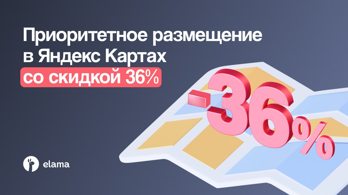 Приоритетное размещение — это способ обойти конкурентов: 📍 Зелёная приоритетная метка — больше, ярче и заметнее. Она остаётся на карте даже при уменьшении масштаба. То есть клиент видит вас раньше всех — ещё до выбора. 📍 Выше в поиске по целевым запросам. Алгоритм понимает, что ищут рядом, и поднимает вашу карточку в выдаче именно в тех сценариях, где идёт конкуренция. 📍 Показы в карточках конкурентов. Вы появляетесь в блоке «Похожие места» у тех, кто стоит рядом в вашей нише. 📍 +39% маршрутов по данным Яндекса после запуска. Маршруты = реальные клиенты, которые решили поехать именно к вам. Запускайте продвижение на Яндекс Картах через eLama со скидкой до 36% по ссылке 👈🏻 🦙 eLama в: MAX (https://max.ru/eLama_russia?utm_source=telegram_elama&utm_medium=social&utm_campaign=yandex-karty_2026-03-11) | ВКонтакте (https://vk.com/elama) | Дзен (https://dzen.ru/elama?utm_source=telegram_elama&utm_medium=social&utm_campaign=yandex-karty_2026-03-11)