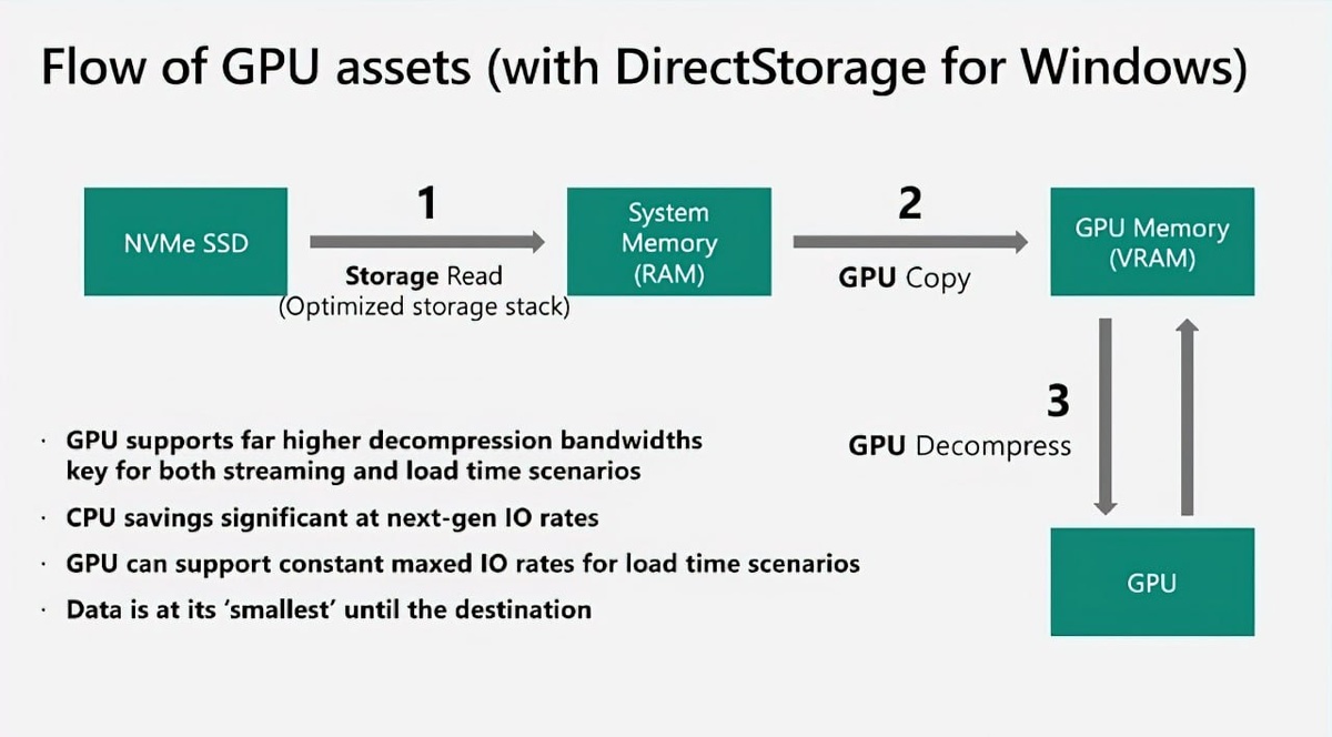 4. Главным нововведением стала поддержка алгоритма сжатия Zstandard (Zstd), который должен ускорить загрузку игр и потоковую подгрузку ресурсов. Zstd станет новым вариантом сжатия игровых данных в Windows. Он обеспечивает более высокий коэффициент сжатия и быструю декомпрессию, что уменьшает объём передаваемых данных и снижает задержки при загрузке текстур и других ресурсов во время игры. Поддержка реализована как для CPU, так и для GPU. При этом производители графики уже работают над оптимизациями декомпрессии Zstd для своих драйверов. Также Microsoft опубликовала на GitHub базовую реализацию GPU-декомпрессии Zstd на вычислительных шейдерах. Она рассчитана на игровые данные, разбитые на блоки около 256 КБ, что соответствует типичным сценариям потоковой загрузки ресурсов в современных играх.