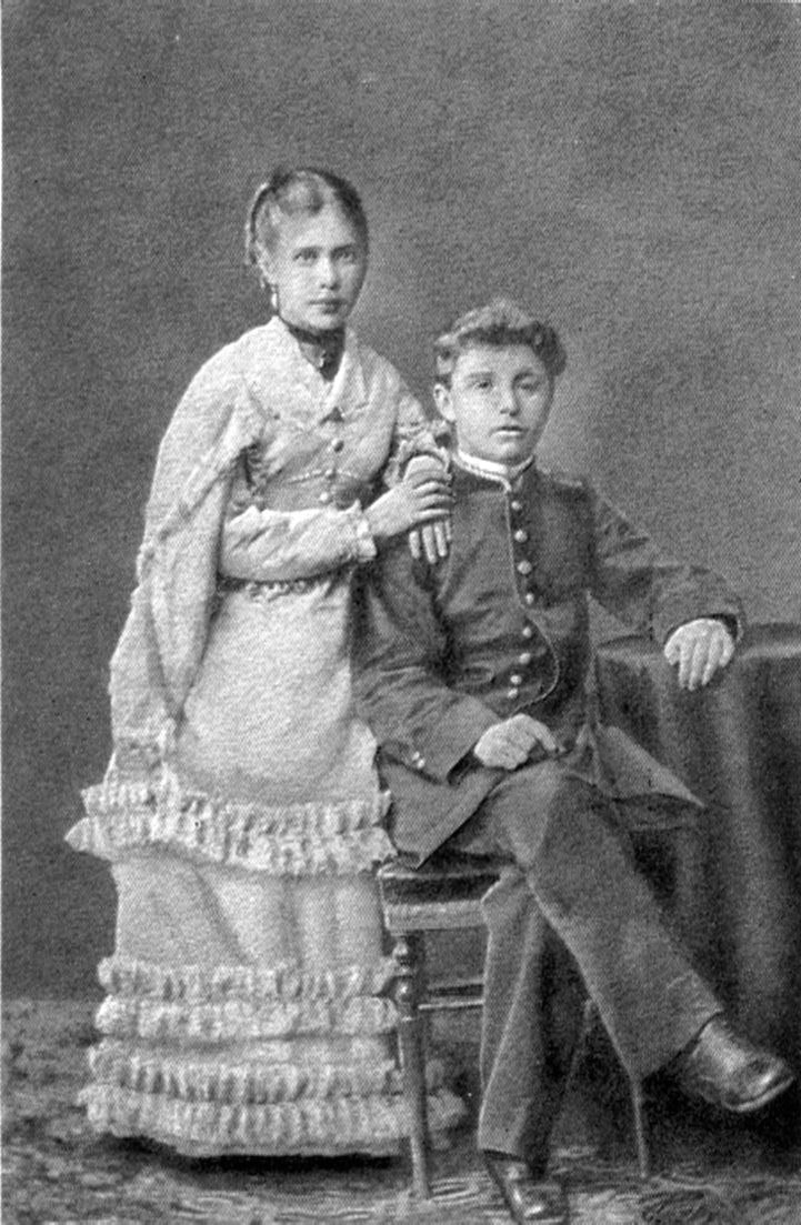 Его отец, происходивший из польского рода, служил в отдельном Сибирском корпусе. Мать умерла, когда мальчику было три года. Вторая жена отца воспитала Михаила, его сестру Анну и других детей. Но все же иногда между детьми и мачехой бывали холодные отношения. Семья часто переезжала. Рисованием Миша начал заниматься в Петербурге. Сначала молодой человек поступил в университет на юриспунденцию, но в 24 года он стал слушателем Академии художеств в мастерской Чистякова. Там художник сблизился с Серовым. Академию Михаил не закончил, ему предложили работу в Киеве. На фотографии Анна и Михаил Врубели во время учебы в гимназии.