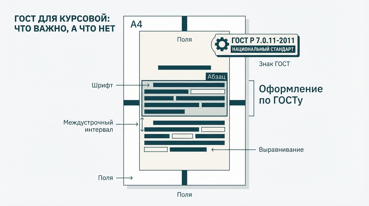 Разбираю, что такое ГОСТ применительно к курсовой, что он реально требует — и где большинство студентов сливают баллы из-за ерунды.