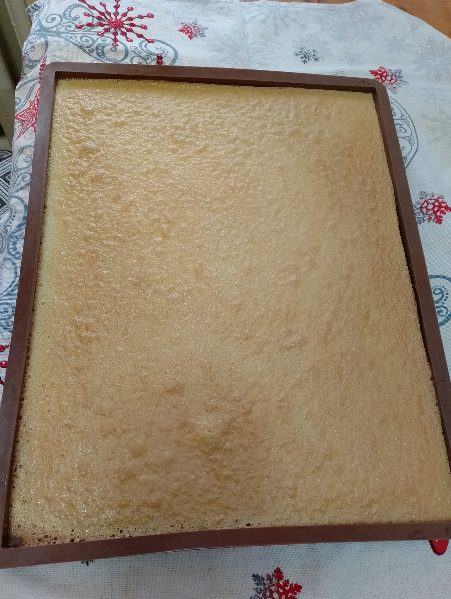 Пока горячий нужно свернуть в рулет можно на бумаге для выпечки. Пусть остывает.