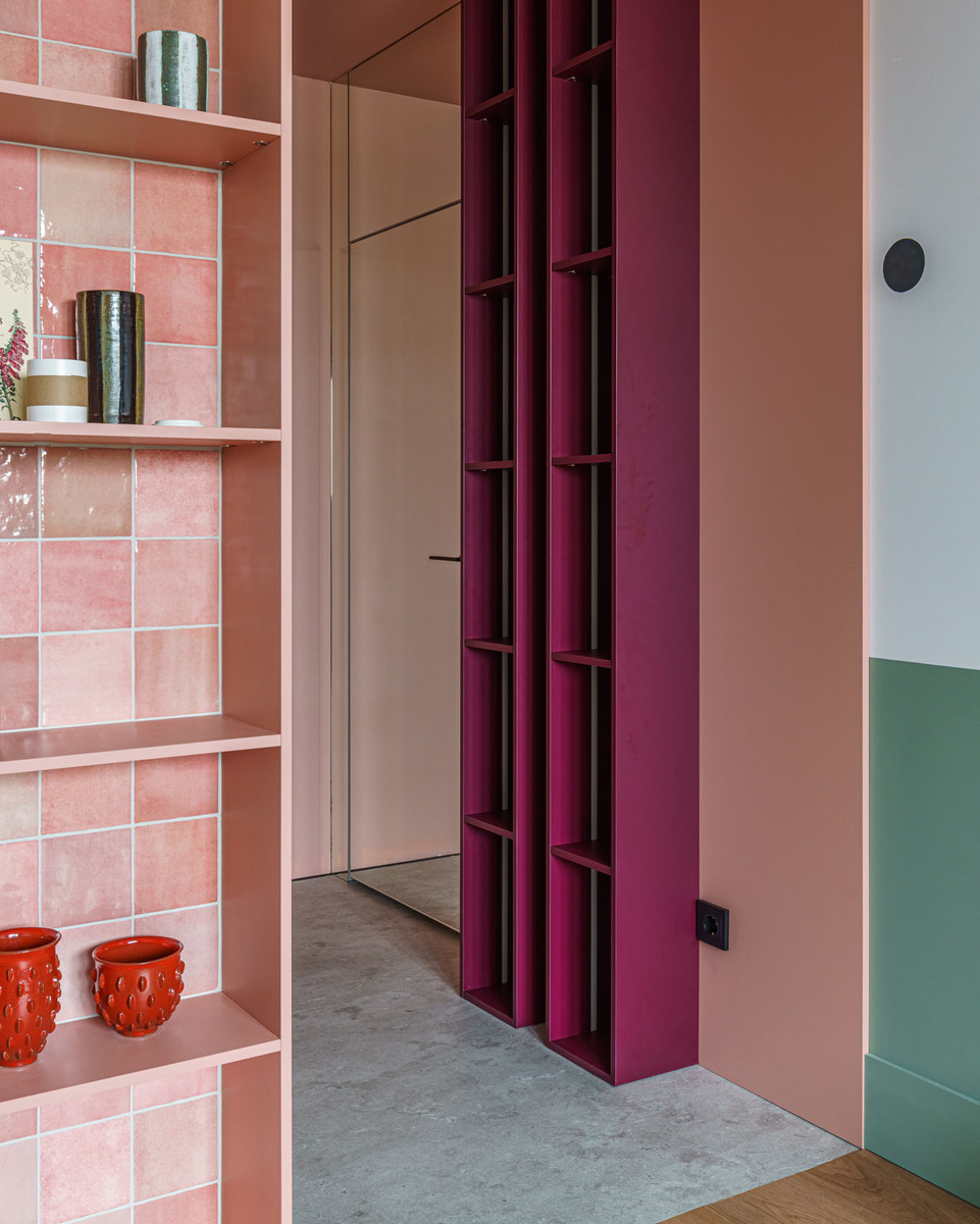В нашем сегодняшнем обзоре «Квартирного вопроса» яркая спальня, с оттенками розового и темно-зеленого, мы назвали ее - «арбузная»! Подписывайтесь на канал Ultrawood, чтобы вдохновляться стильными решениями для ремонта и современными дизайнами интерьеров! Мы делимся идеями, которые помогут вам легко преобразить пространство, сделать его уникальным и уютным! В условиях долгой зимы и серости, хочется ярких красок и ощущения радости. Дофаминовый интерьер становится отличным способом поднять настроение и организовать пространство, которое будет вдохновлять и радовать даже в самые холодные месяцы. Дизайнеры разбили помещение спальни на несколько функциональных зон: зона хранения, спальное место, зона с диваном для просмотра фильмов на проекторе, и рабочее место на лоджии. Отдельно хочется отметить зоны хранения – это два стильных открытых стеллажа в сочных оттенках, которые вызывают вау-эмоции! При обилии ярких красок и декора, важно не перегрузить помещение, чтобы в нем было комфортно нахо