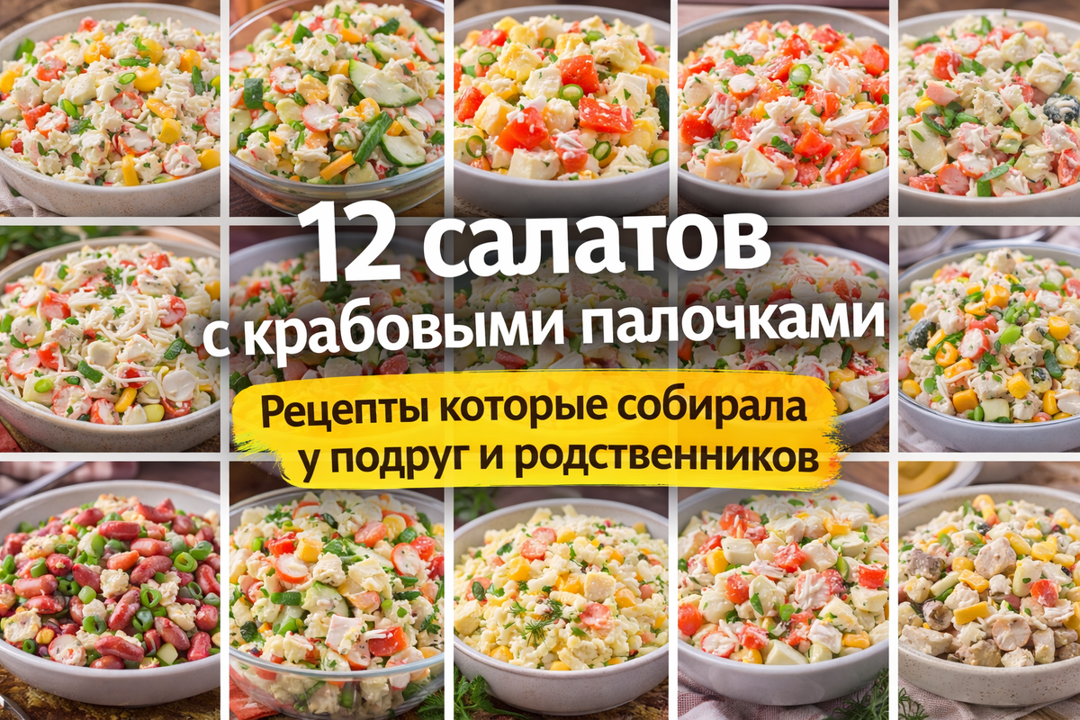 Крабовые палочки давно стали одним из самых популярных продуктов для салатов. Они недорогие, быстро режутся и хорошо сочетаются со многими продуктами. У каждой хозяйки есть свой вариант такого салата. Кто-то добавляет рис, кто-то огурец, кто-то сыр. Я решила собрать разные варианты, которые готовят мои подруги и родственники. Получилась целая подборка. Ингредиенты крабовые палочки 200 г