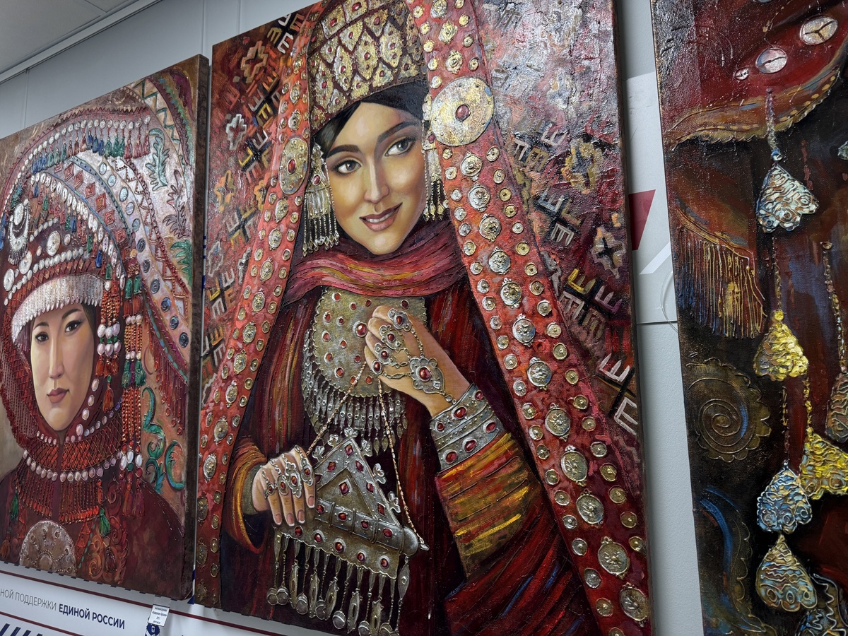 Новая экспозиция в выставочном пространстве «Штаб-Экспо» Штаба общественной поддержки «Единой России» в РТ приурочена к Году единства народов России и объединяет живопись и авторскую куклу. Серию картин «Сокровища древних тюрков» представила член Союза художников РТ Анастасия Бузунеева. Авторские куклы в этническом стиле показала мастер декоративно-прикладного искусства Ирина Зубцова. Мероприятие состоялось при поддержке Российского общества «Знание». «Меня позвали украсить месяц март, чтобы здесь, в Штабе общественной поддержки было более женственно. У женщин 8 Марта должно быть каждый день: любить себя, дарить красоту себе и миру. Ведь сокровище – это то, что лежит в сундуках, это украшения, но я считаю, что сокровища прежде всего – это национальный генофонд. Женщина составляет генофонд и в то же время она – украшение мужчины», – подчеркнула Анастасия Бузунеева. На ее картинах сокровища древних тюрков – женщины в национальных костюмах и украшениях, элементы которых хранят древние лег