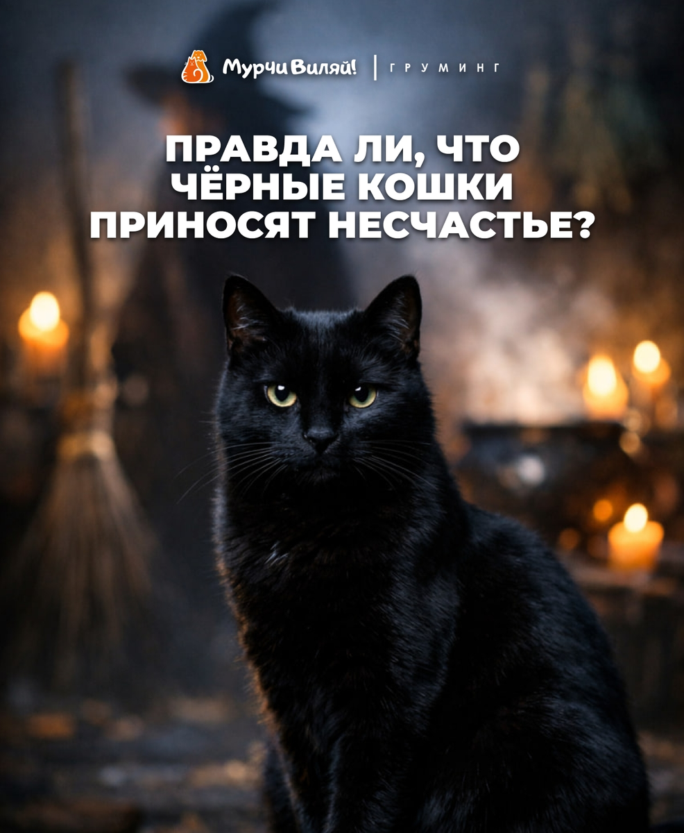 Так страх и суеверия постепенно превратились в устойчивый миф. 2. Почему миф жив до сих пор Суеверия передаются из поколения в поколение. Кто-то до сих пор обходит чёрную кошку стороной, просто потому что «так говорила бабушка». Плюс кино, книги и Хэллоуин — там чёрная кошка часто появляется как символ мистики. 3. Что говорит реальность На самом деле цвет шерсти никак не влияет на характер кошки.