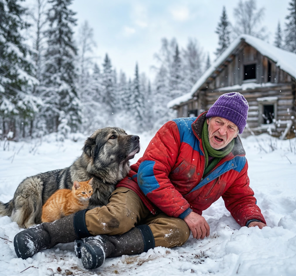 Через час Фёдор, соорудив из найденного куска фанеры и еловых лап подобие волокуши, тащил эту странную парочку сквозь заснеженный лес. Котенок ехал за пазухой старика, согревая его грудь своим слабым, но ровным сердцебиением, а пес лежал на фанере, укрытый запасным тулупом.