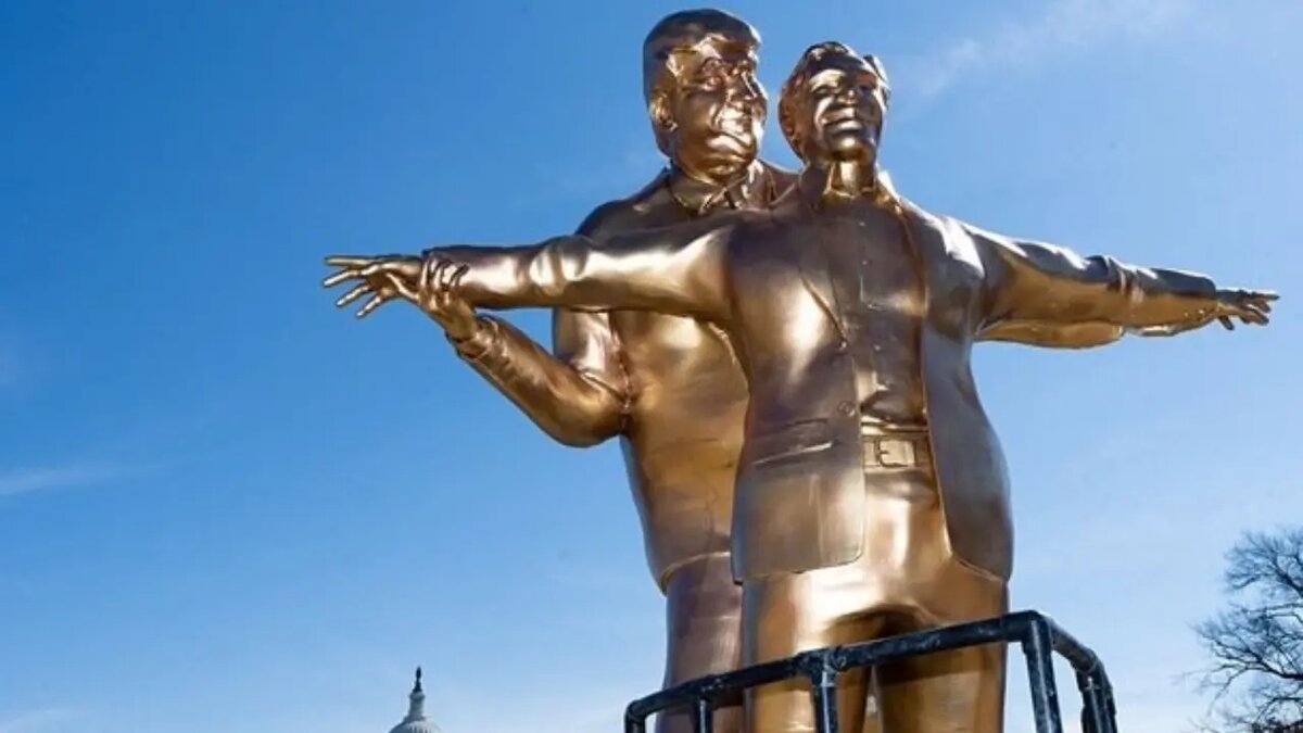 По имеющимся данным, на площади перед зданием Конгресса в центре города установлена скульптура неизвестных авторов, выделяющаяся своей оригинальностью. В этом произведении изображены бывший президент Дональд Трамп и известный финансист Джеффри Эпштейн.