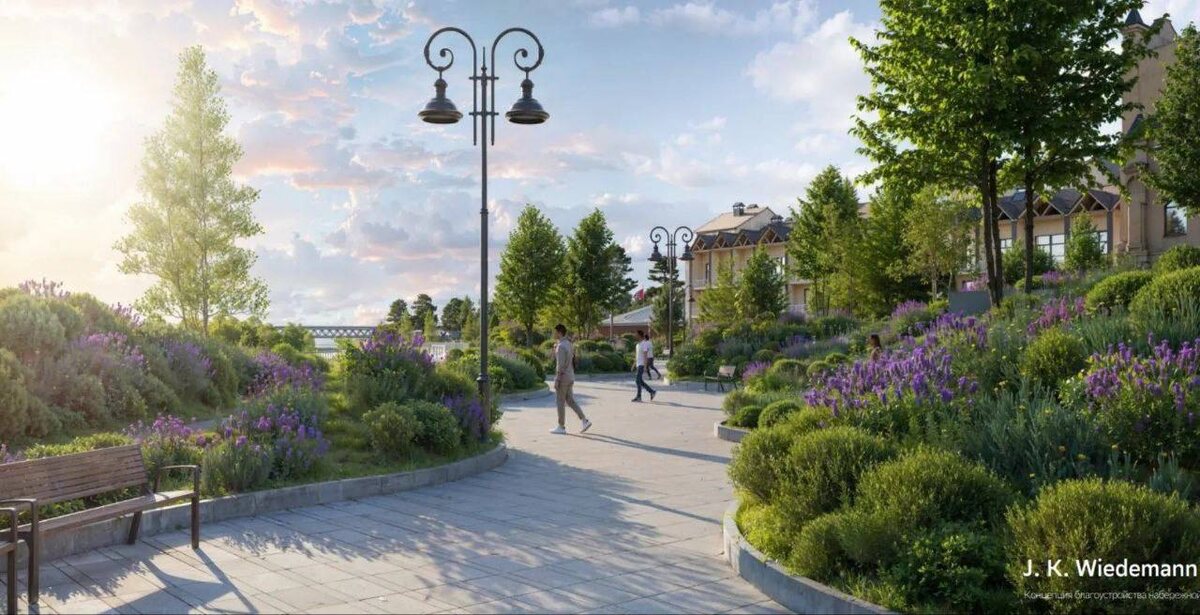 Появились свежие кадры преображения набережной. Особый акцент сделан на озеленении. Появятся сосны на штамбе, масштабные клумбы и объемные альпийские горки. Общая площадь зеленых насаждений превысит 11 тысяч квадратных метров. На обновленной площади разместят качели, павильон проката и раздевалки. Летом можно будет взять велосипед или ролики, а зимой кататься на коньках. В проекте предусмотрены современные детские площадки площадью более тысячи квадратных метров, спортивная зона и велодорожка вдоль Иртыша. Фото: J. K. Wiedemann
