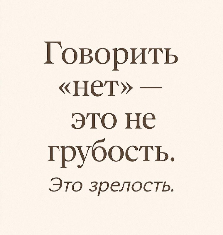» Почему-то нас с детства учат помогать, но не учат отказывать. А ведь умение сказать «нет» — это не эгоизм, а зрелость. Возьмите за правило: когда у вас просят помощь, а вы чувствуете, что ресурсов нет — говорите «нет». Без чувства вины, без оправданий, без долгих объяснений. Вы — не единственная надежда человека. Правда. Рядом с ним есть другие люди, другие возможности, другие пути. Вы не обязаны быть тем, кто всех спасает ценой себя. Напоминаю важное: • Ваши силы — не бездонный колодец • Ваше время — не резиновое • Ваше право — выбирать, куда их направлять Поможете в следующий раз — когда действительно будете готовы. Когда есть ресурс, энергия и искреннее желание, а не чувство долга или страх показаться плохим. ❓ А вам легко говорить «нет» или до сих пор внутри включается чувство вины?